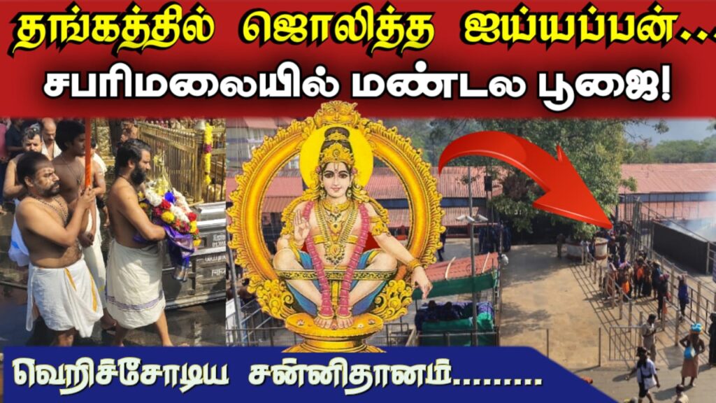 சபரிமலையில் மண்டல பூஜையின் உச்ச நிகழ்வாக இன்று (டிசம்பர். 27) ஐயப்பனுக்கு தங்க அங்கி அணிவித்து சிறப்பு வழிபாடு நடைபெற்றது.