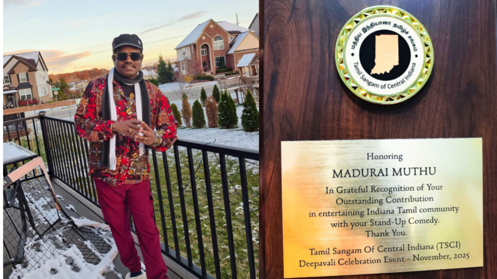 இந்த 2025 ஆம் வருட தீபாவளி திருநாளை நாம் அனைவரும் கொண்டாடி மகிழ்ந்தோம். இதே போல் உலகெங்கும் பரவி வாழக்கூடிய தமிழர்கள் பல்வேறு நாடுகளில் தீபாவளி பண்டிகையை வெகு விமரிசையாக கொண்டாடி வந்தனர் அந்த வகையில் வட அமெரிக்கா அட்லாண்டா மற்றும் அதனை சுற்றியுள்ள பகுதிகளில் தமிழ் சங்கங்கள் மூலம் எத்திக்கும் தித்திக்கும் தீபாவளி – 2025 என பண்டிகை கொண்டாடப்பட்டதில் சிறப்பு அழைப்பாளராக மதுரை முத்து கலந்து கொண்டார். பல்வேறு நிகழ்ச்சிகளில் கலந்து கொண்டு சிறப்பித்த அவருக்கு வட அமெரிக்கா ஜார்ஜியாவில் அட்லாண்டா மாநகர தமிழ் சங்கத்தின் சார்பாக ‘சின்னத்திரை நகைச்சுவை மன்னன்’ என பட்டம் வழங்கி கௌரவித்தனர். மதுரை முத்து அவர்கள் தமிழகத்தில் பல்வேறு விருதுகளையும் பட்டங்களையும் பெற்றிருந்தாலும் உலகம் முழுமைக்கும் பெருமை சேர்க்கக் கூடிய விதமாக அமெரிக்கா தேசத்தில் பட்டம் பெற்றிருப்பதை நகைச்சுவை ரசிகர்கள் மட்டுமின்றி சினிமாத்துறை, அரசியல் துறை உட்பட உலகத் தமிழர்கள் மத்தியிலும் வாழ்த்துகள் குவிந்து வருகிறது.