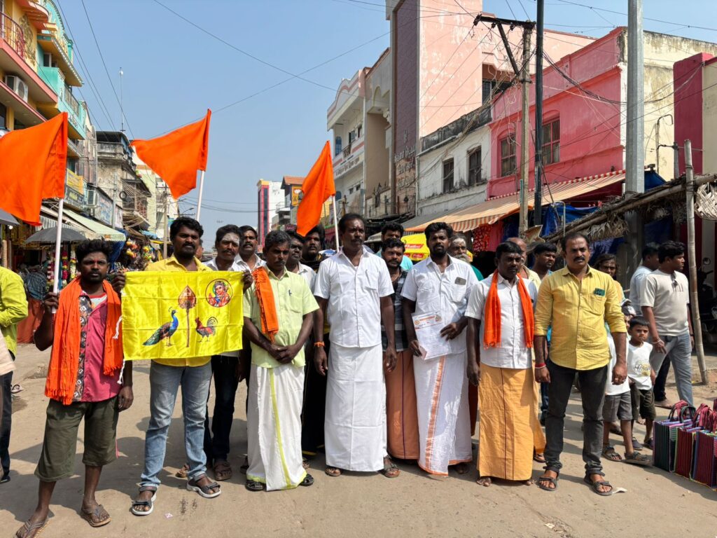 திருப்பரங்குன்றம் மலை உச்சியில் சேவல் கொடியை ஏற்றக்கோரி பாரத ஹிந்து எழுச்சி முன்னணி சார்பாக 14 பேர் ஊர்வலமாக சென்று மனு வழங்கினர்.